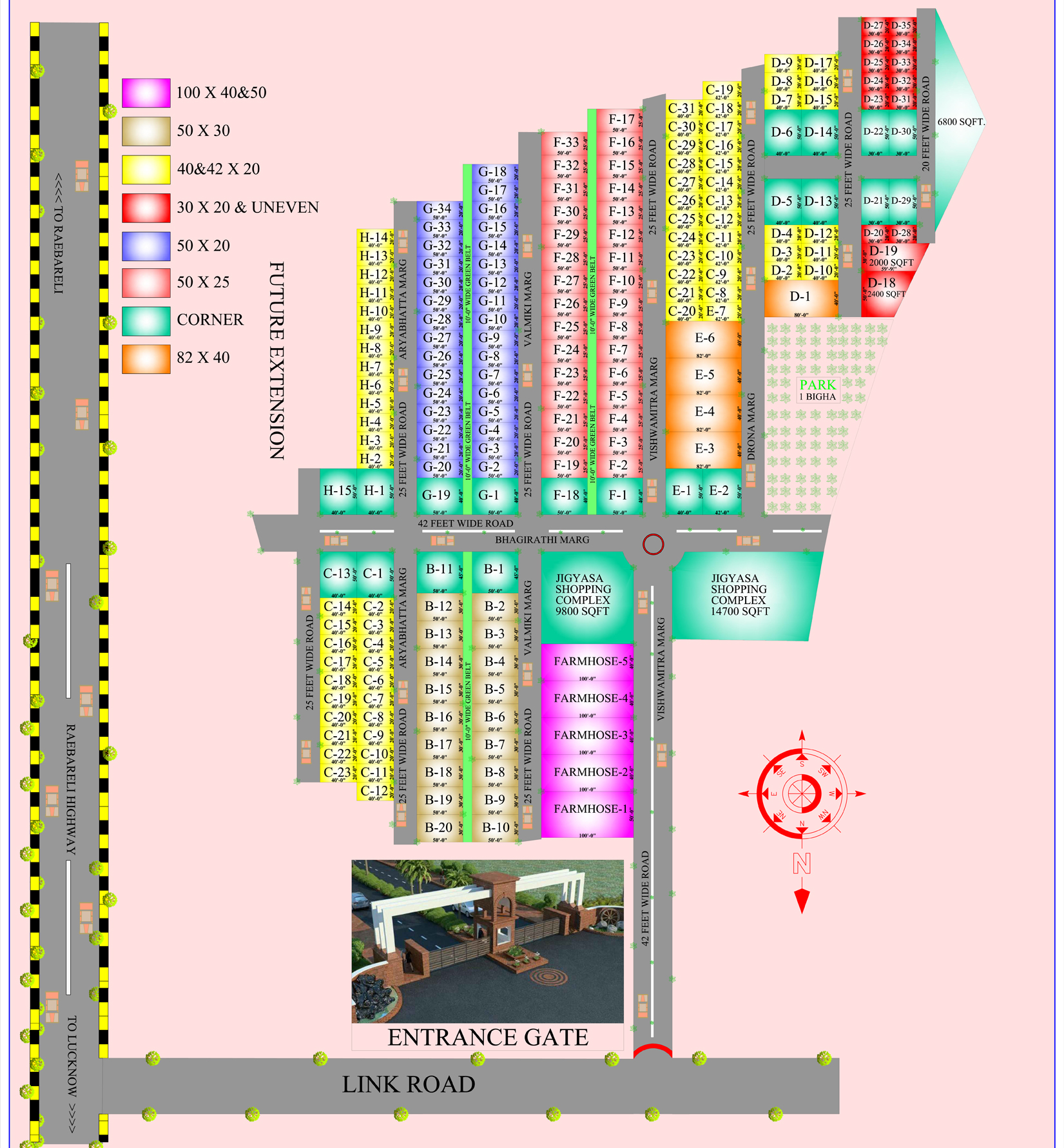 An Luxurious Living project by Jigyasa Infratech Pvt. Ltd. located at Raibareli Road, Lucknow. A place where every moment of life is worth a celebration, a place where dreams begin to unfold, where you rediscover life's little pleasures, where happiness is nurtured in every nook and corner, and above all, a place you'd be proud to call "Home". This project has been designd in such a way the each resident is guarented alife time of privacy and an unhurried peace of life with a completely safe,green and pollution free environment. In this project total plots are 800 sqft to 5000 sqft. Plot Rate 1400/- Sq.Ft.